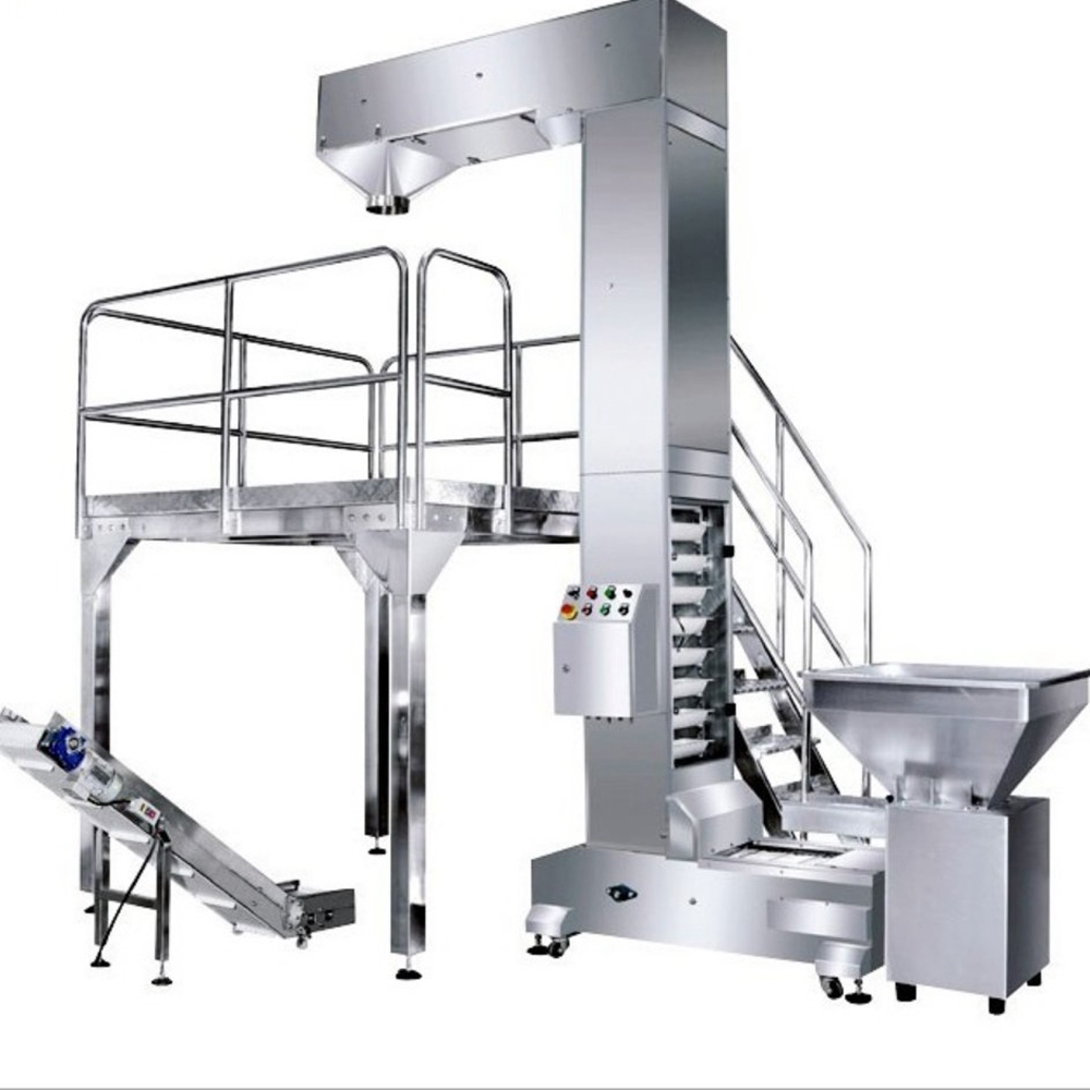 產線可由給袋式包裝主機,多頭組合稱,平臺支撐架,物料提升機,成品輸送,重量選別機,開封箱,裝箱,碼垛,集成管理系統