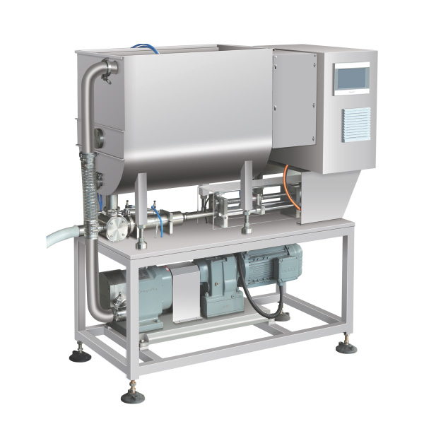 (1)給袋式全自動真空包裝機由兩種旋轉式一體機(分別為填充系統和真空系統),真空系統為連續式旋轉運動,無慣性,無沖擊力。